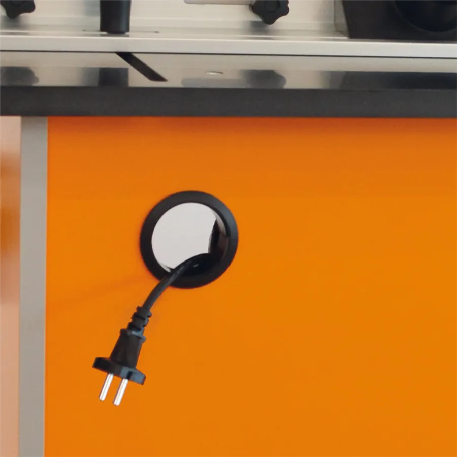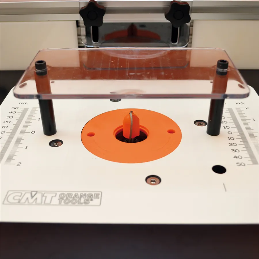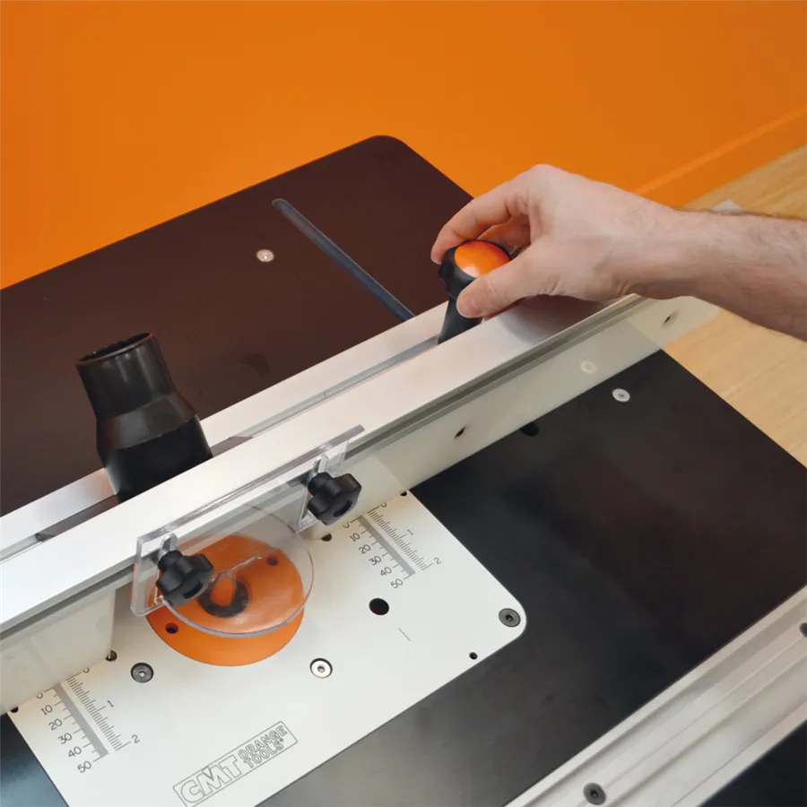 Az INDUSTRIO maróasztal a mindennapi professzionális használatra van tervezve. Az asztal szerkezete lehetővé tesz 89mm átmérőjű szerszám rögzítését is. Három részre&van felosztva, amelyek külön- külön is megvásárolhatóak. Nagy előnye a kemény műanyagból készült magasságra állítható rögzíthető lap. Az asztal lapjára van szerelve a két T horonnyal ellátott profil a szerszám vagy az Ön által elkészített mozgatható sablon pontos vezetésére.