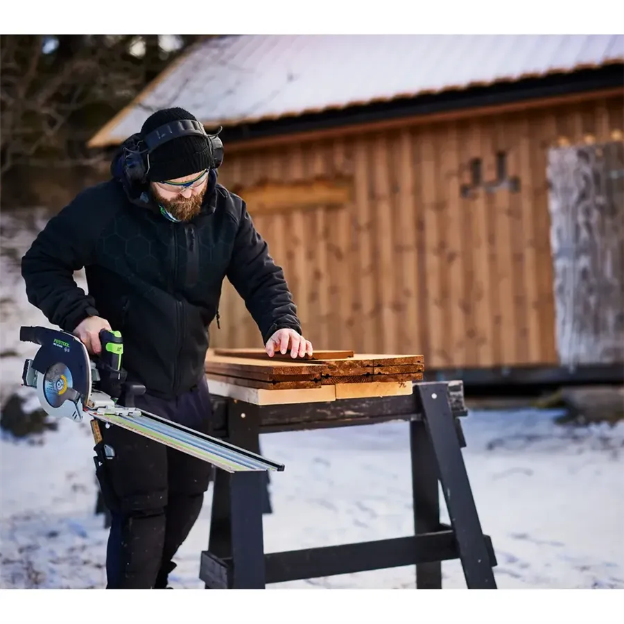 - Mobil leszabófűrész-rendszer: gyors és szögpontos keresztvágások az FSK vezetősínnel.