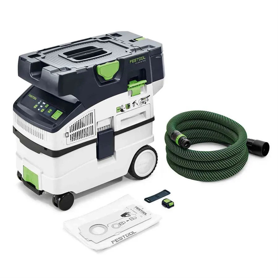 Viszlát por. Üdv egészség – csatlakozóaljzat nélkül is. A CTMC MIDI akkus kompakt elszívó szereti a port, és tökéletesen illeszkedik a Festool vezeték nélküli szerszámaihoz. Akár mobil fűrészelési, csiszolási vagy fúrási alkalmazásról van szó: a kompakt kialakítás és a csekély tömeg tökéletes partnerré teszi egész napra. Így az akkus rendszerrel is pormentesen dolgozhat! Az akkus szerszámgép és az elszívó közötti tökéletes összjátékról az innovatív Bluetooth® automatikus indítás vagy a praktikus távvezérlés gondoskodik. Akkus elszívónk a legnagyobb szívóerővel rendelkezik a 36 V-os turbinának és a 2 x 18 V-os akkumulátoroknak köszönhetően. Az egészségesebb munkavégzésért az M porosztályban. És, szokás szerint minden összeillik: elszívó, sima elszívótömlő, akkus kéziszerszám, T-LOC Systainer csatlakozó. Így a rendszer minden elemében tökéletes.