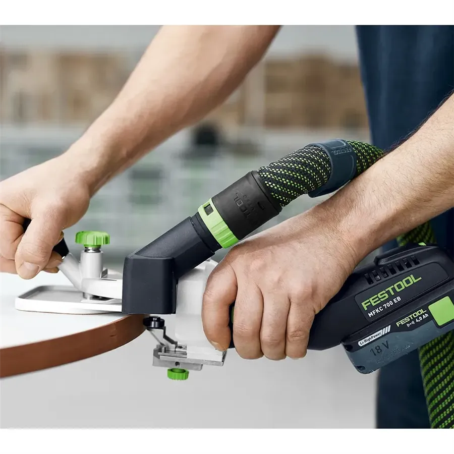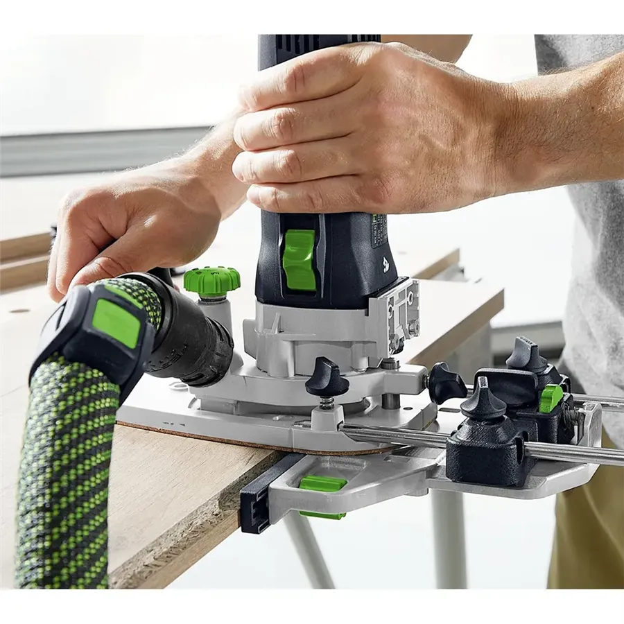 maróasztal 1,5° elszívóbúrával, letapogató talp, letapogató talp letapogató rugóval, letapogató görgő, élszintbemaró D 19 x 16, SA-OF 1010/MFK oldalütköző finombeállítással, elszívóbúra az oldalütközőhöz, csavarhúzó SW 3, SYS3 M 137 Systainer