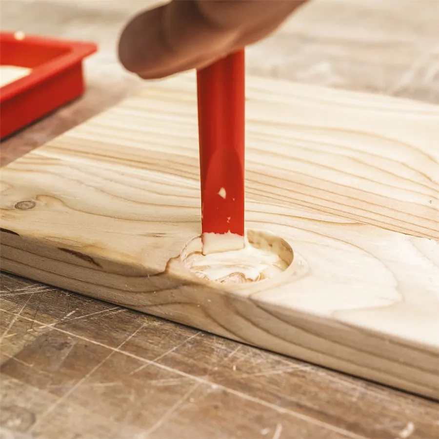 Szilikon ecset a ragasztó kényelmes felhordására a fára. Kétféle ecsetméret, szilikon spatulával és tálcával, univerzális felhasználásra. Könnyen tisztítható.