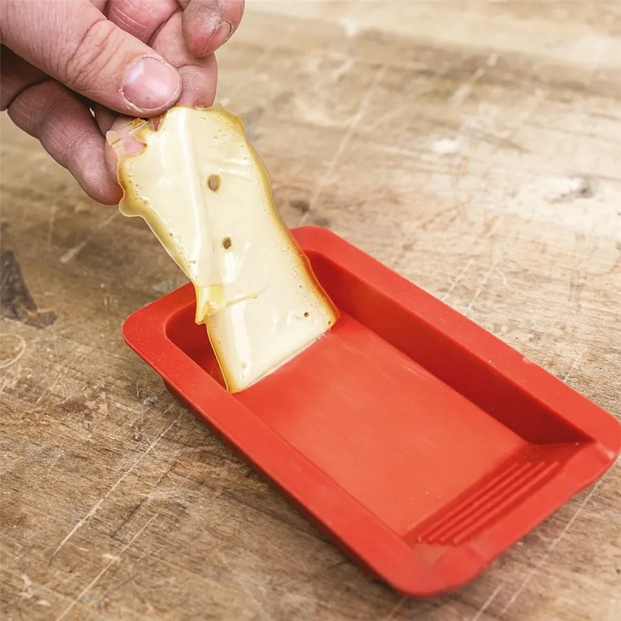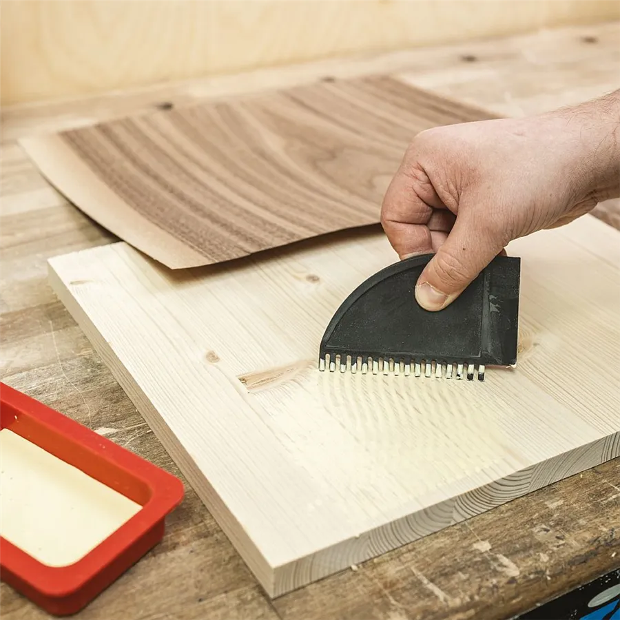 A nagyobb felületekhez használhatja a szilikon spatulát recézett résszel, amely lehetővé teszi a ragasztó egyenletes felhordását az egész anyagfelületen vagy akár lapos csapokon is. A szilikon spatula lapos része tökéletesen eltávolítja a felesleges ragasztót azokról a helyekről, ahol nincs rá szükség.