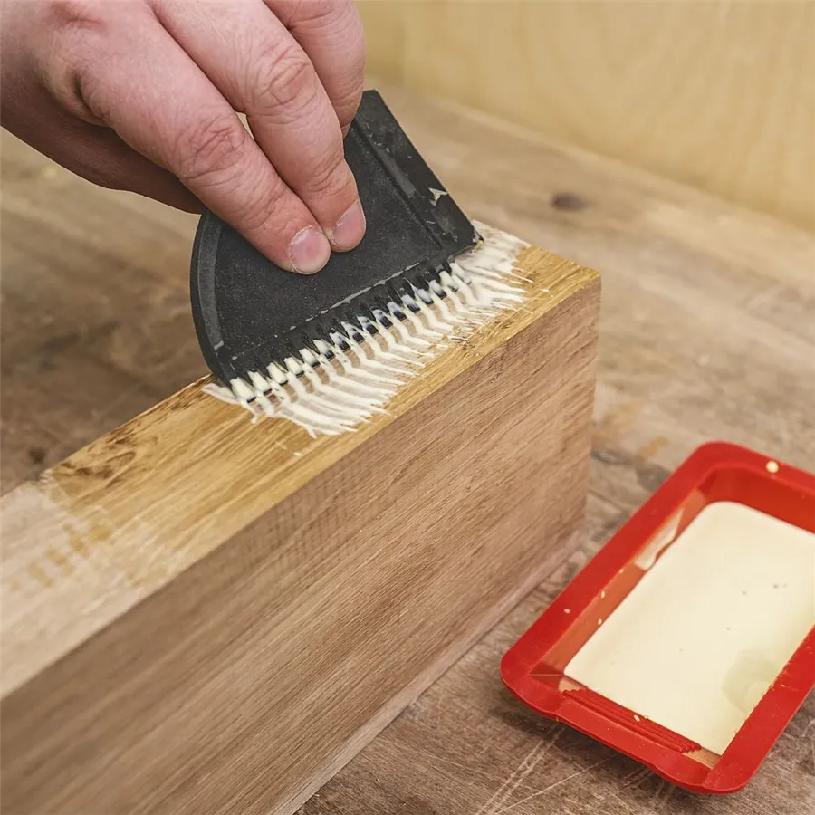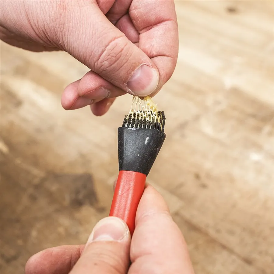 A nyél lapított műanyag vége enyhén rugalmas, így kényelmesebb a használata. 40 mm-es hosszának köszönhetően a ragasztót a mély hornyokban vagy a fecskefark csapozásokban is könnyedén eloszlathatja.